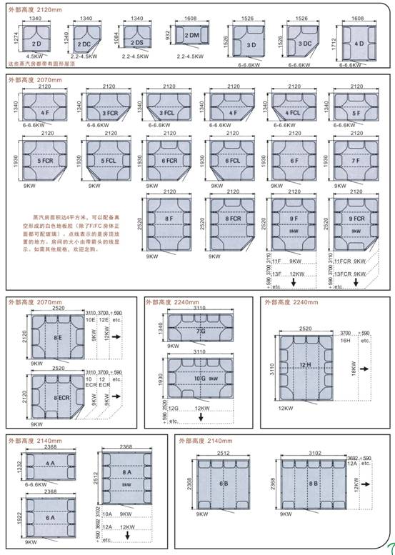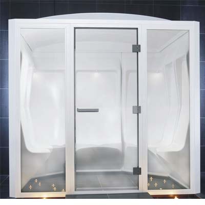 由經(jīng)過高科技真空成形的,特殊等級的白色塑料做成,用于牢固和蒸汽密封結構。 按拼裝壁板、頂板發(fā)貨,帶有整體式座椅,及各個座椅上的嵌頂燈。 門是由彩色鋼化安全玻璃做成,有牢固框架及陽極鋁把手。 照明變壓器,空氣排氣口和所有組裝五金件。