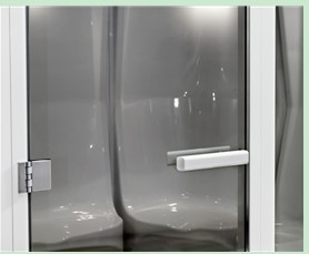 TYLO的淋浴房和蒸汽房的絞鏈門是用6mm霧化鋼化安全玻璃做成,有鋁制框架、把手和鉸鏈。