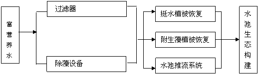 根據(jù)景觀水體富營(yíng)養(yǎng)發(fā)生的特點(diǎn),我公司擬定的水體處理工藝設(shè)計(jì)如圖所示: